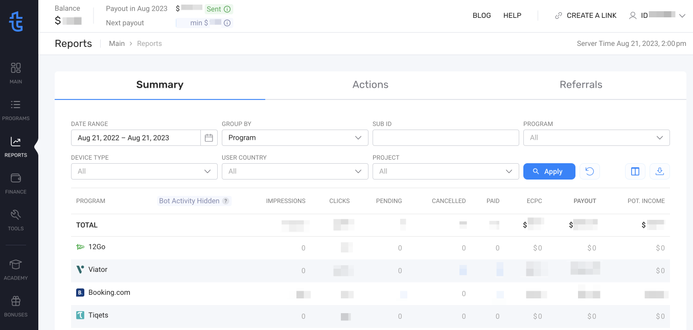 Initially, I heard negative reviews about the Booking.com affiliate program (technical issues, delayed payouts, nonexistent customer service), so I decided to try trafficsynergy.org .